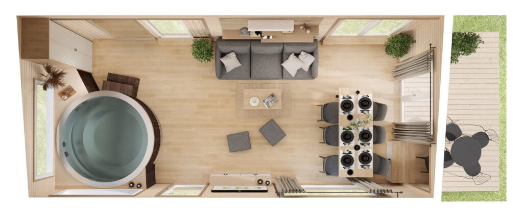 To miejsce idealne na poranną kawę w blasku wschodzącego słońca, wieczorną sesję jogi lub medytacji, spotkanie z książką w wygodnym fotelu, pracę zdalną w spokojnej, sprzyjającej koncentracji przestrzeni, albo po prostu chwilę tylko dla siebie – z dala od codziennego zgiełku.