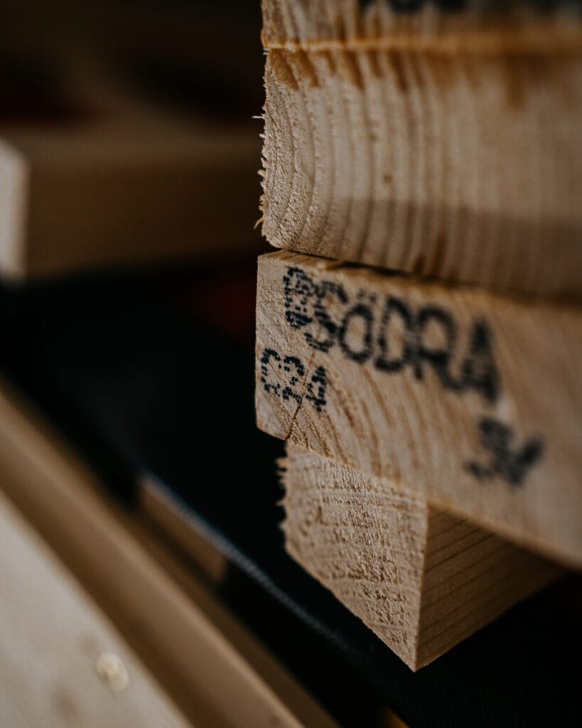 Wytrzymała konstrukcja oparta o szkielet z drewna konstrukcyjnego C24 i znaku CE. Sprawia, że mamy absolutną pewność, że szkielet domku wykonany jest z materiału o najwyższej jakości, co zapewnia trwałość konstrukcji domku.