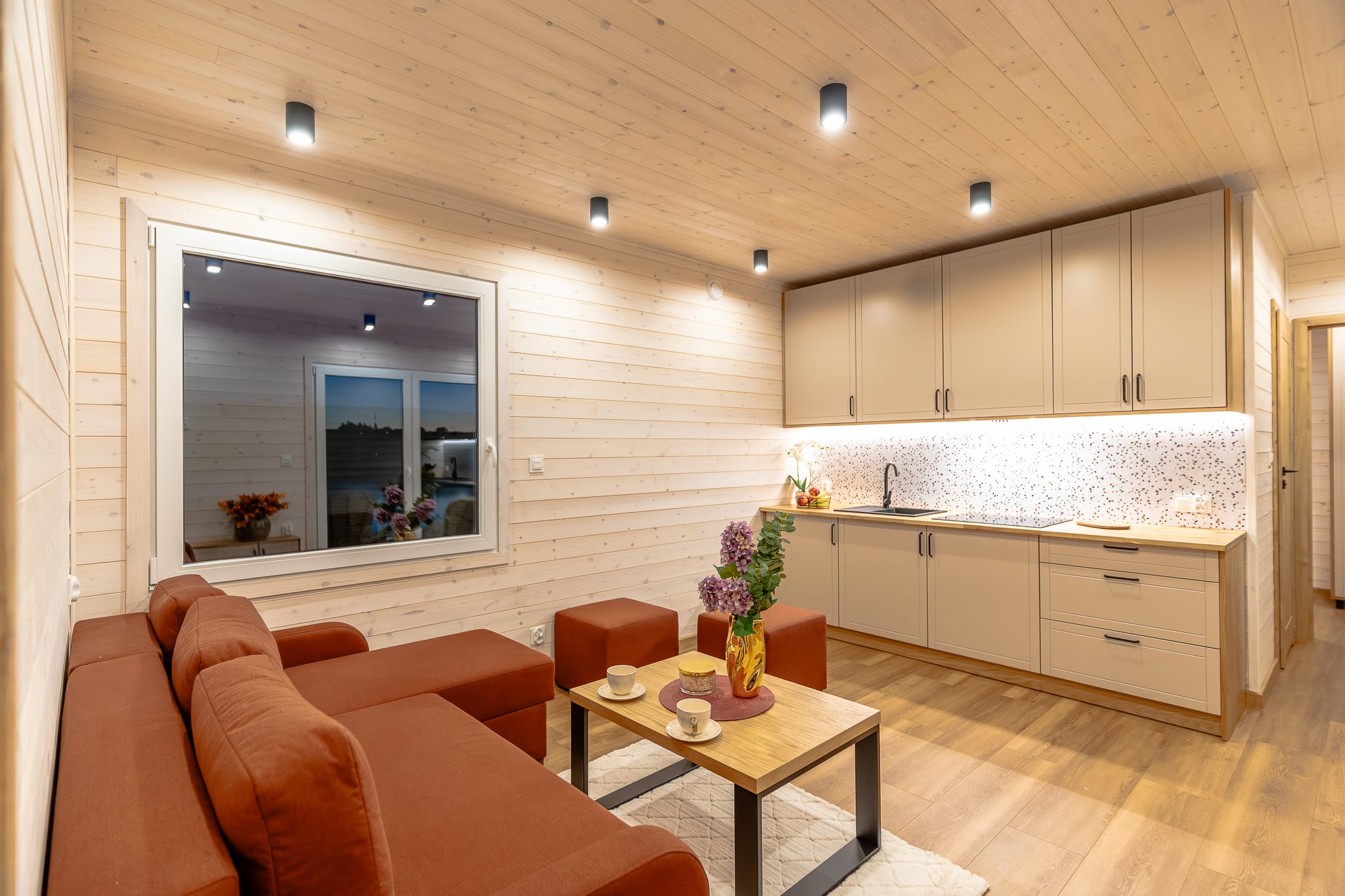 Dzięki solidnej konstrukcji, skutecznemu ociepleniu i nowoczesnym instalacjom, dom zapewnia komfort przez cały rok — niezależnie od warunków pogodowych. Idealny zarówno jako domek letniskowy, jak i pełnoprawny dom całoroczny.