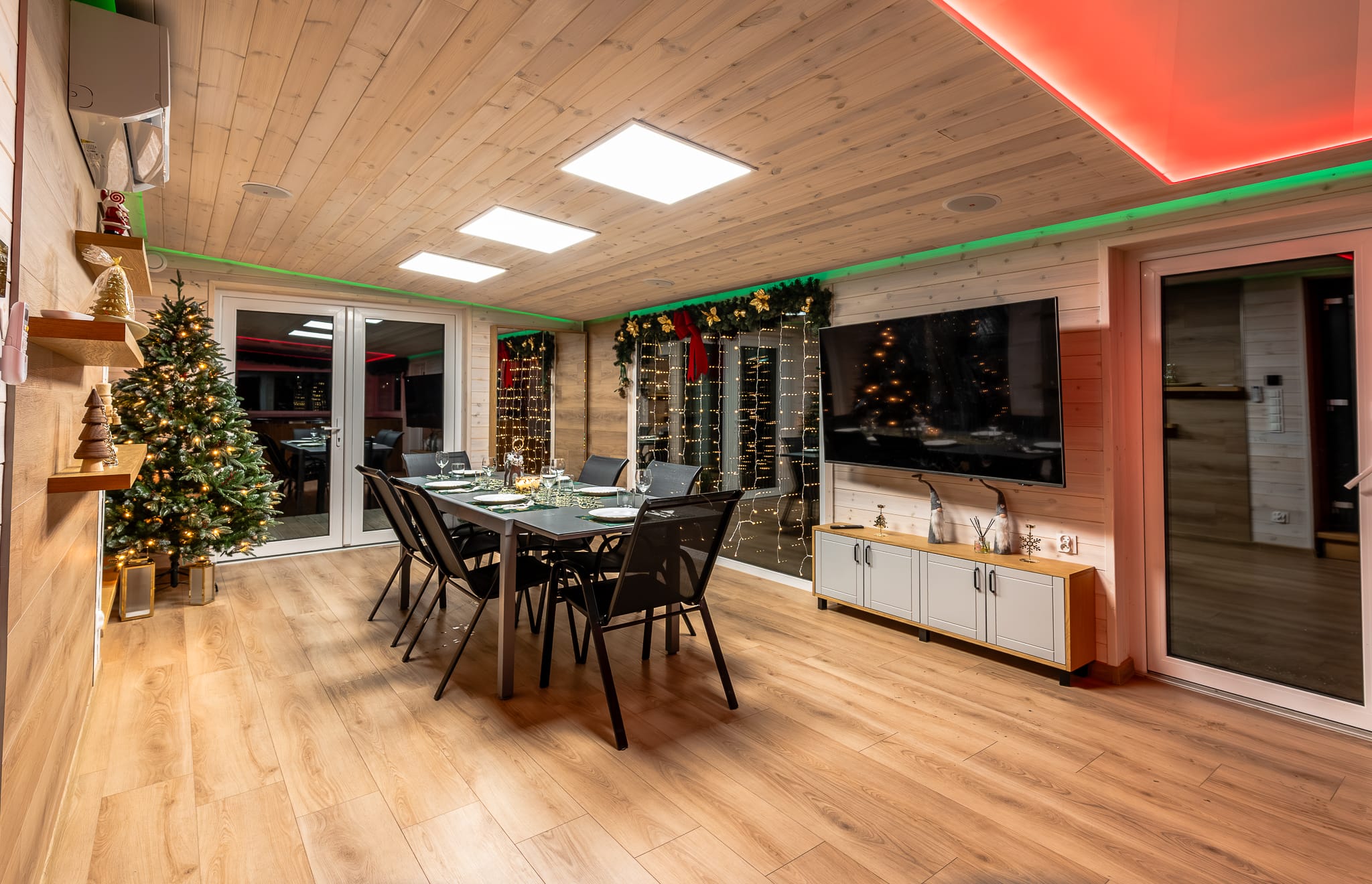 Domek jest również w pełni przystosowany do instalacji ogrzewania elektrycznego – dzięki temu możesz korzystać z niego komfortowo przez cały rok.